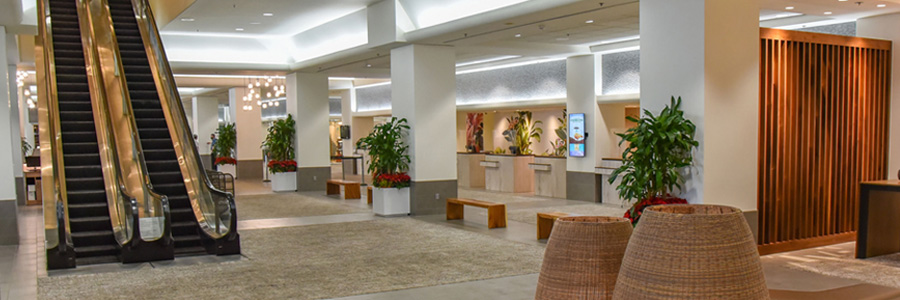アラモアナ・ホテルは旅行客からローカルまで多くの人が出かけるショッピングセンター、アラモアナセンターに直結。ショッピングはもちろんのことグルメスポットも充実しており、最高のロケーションと言えるでしょう。アラモアナ・ホテルがあるアラモアナ地区は、ワイキキやワード地区のほか、どこに行くのにも便利な場所。アラモアナセンターは市バスの拠点となる場所でもあり、交通の利便性も優れています。
