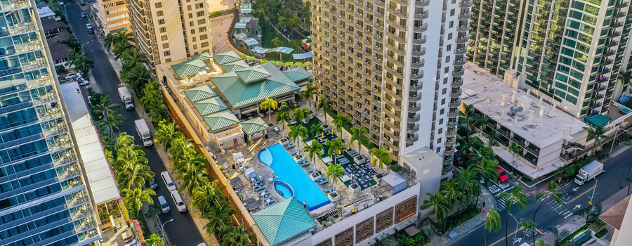 40以上のショップやレストランが軒を連ねるワイキキ・ビーチ・ウォークはホテルに隣接。またT ギャラリア by DFSやロイヤル・ハワイアン・センターも徒歩圏内にある、便利な立地が人気のホテルです。