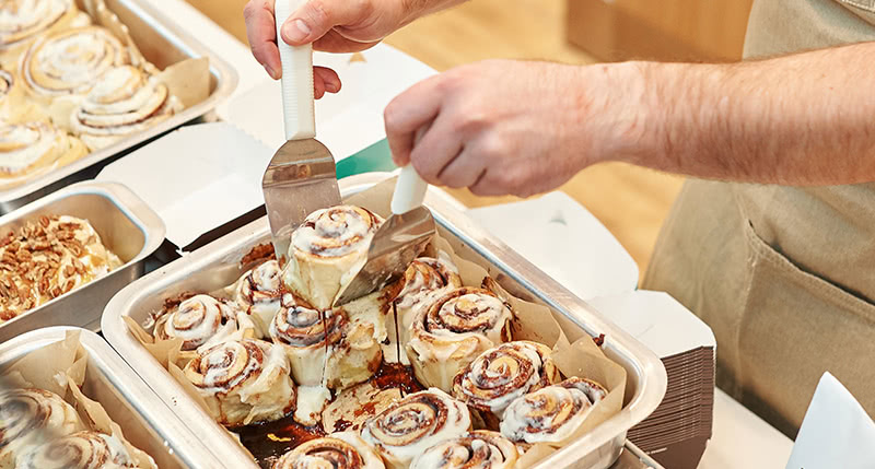 香ばしいシナモンのフレーバーととろけるフロスティングが一度食べたら病みつきなる味のシナモンロール。一口サイズで食べやすいミニボンも人気!