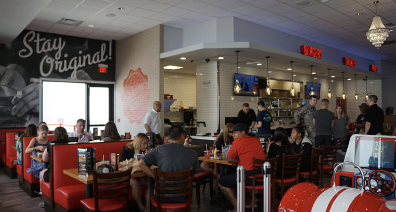 LA発のハンバーガーチェーン店。食事をしながら遊べる遊戯センター「ロックン ファン」内にあり、オールディーズな雰囲気と美味しいアメリカンフードを満喫できます。