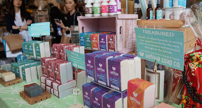 ハワイ在住デザイナーの作品のみを取り扱っているメイド・イン・ハワイのお店。香りの良い石鹸やハワイアンジュエリーはハワイ土産に最適。