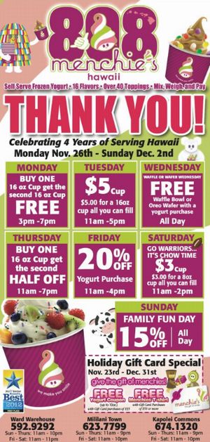 Menchie’s Celebratubg 4th Anniversary of Serving Hawaii
