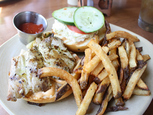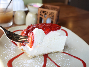 ●ハンバーガーにサンドイッチ、そしてパイ さてさて、元気よく乗り込んだ大食いクラブ2人。 うんうん、天井が高くて、とても素敵な感じのお店ですね。お店の人々も笑顔が素敵でとてもフレンドリーですよ。テラス席と屋内の席がありますね。通常はテラス席を選ぶのですが、今日はちと暑いので、屋内の席を選びます。 ではでは、ランチメニューは…っと。 アペタイザーにサンドイッチ、ハンバーガー、サラダに、ピザ、ヌードル類もありますよ。どれも魅力的で悩んじゃいますね~。 ちなみにこのお店は、地元の農業や漁業をサポートしていて、持続可能な社会をめざしているんです。使われる野菜はどれも地元産のオーガニック。ビーフも牧草を食べて育てたもの、ホルモン剤を与えていないチキン、などなど環境にも体にも良い食材を使っているんですって。だから安心だし、素材の良い味が生きているんですね。 悩んだ末に選んだのは、「フレッシュ・アイランド・フィッシュ・サンドイッチ($17.95)とピートのクラシック・バーガー($15.95)。どちらにもたっぷりと揚げたてのフライドポテトが付いてきます。 じゃあ食べてみますね。わっ、まずパンが美味しいです。弾力性があって、良い感じにローストしてありますね。手作りと見た! フィッシュサンドイッチは、お魚が新鮮で、コールスロー、タルタルソースとあいまってとても美味! あっさり目のお味ですが食べ応えは満点です。クラシック・バーガーには、アルギュラという野菜がいっぱい。あと、ウマミ・マッシュルームと言う名前のキノコもこんもり。このキノコ、エリンギにちょっと歯ごたえを加えたような食感で、その名のとおり本当に美味しかったです。さらにハンバーガー・パティも最高に柔らかみのある上品な味で、すご~く上質なハンバーガーでしたよ! すっかり満腹でのけぞっていた私ですが、ここの名物「クリームパイ」を食べないわけには行きません。と、いうわけで、ストロベリー・クリームパイを2人でシェア…ううううう、美味しいーっ! 大食いクラブの叫び声は、きっとコオリナ・リゾート中に響き渡ったに違いありません。手のひらサイズのずしりと大きいパイですが、甘さ控えめで上品なコクがあり、イチゴの甘酸っぱさとあいまって、いくらでも食べられてしまいそう。とても上品でデリケートなクリームは、まるでベルベットのように滑らかで、丸味のある味。なのに、後味はすっきりで、すごーく上質。皆様、ぜひぜひ、これ食べてみてくださいね。皆様の喜びの声も、きっとコオリナ・リゾート中に響き渡るはずですよ♪ |