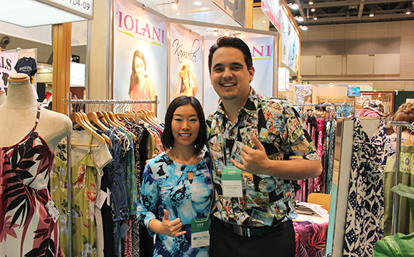 私も会場に行きましたが、ブースにはこのようにイオラニの新作もたくさん展示され、寒い冬だということを忘れるほど、ハワイの空気に包まれていましたよ~。