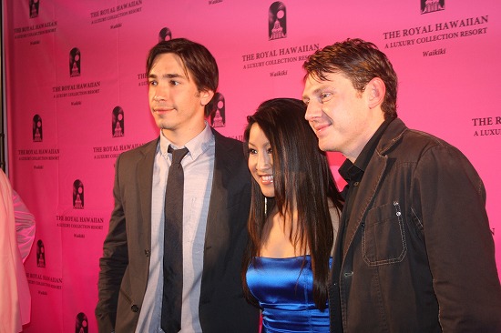 同じザ・ロイヤル・ハワイアン・ホテルのパーティでへイデン・パネッティーアが私たち地元ハワイのメディアの前に登場したときには、アメリカのゴシップ誌の辣腕記者からの質問にも一切答えず、シーンとしていたのに対して、ジャスティン君はぺらぺらといろんなことをしゃべっちゃっていました。その後で、「あ、でもこのことはオフレコだよ!」だって… パーティに来ていた一般の参加者との記念撮影にも気軽に応じていて、とってもフレンドリーないい人だなあ、という印象。