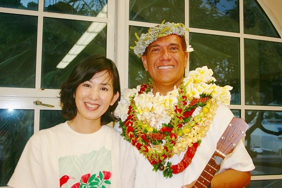 フラダンサーなら一度は出場を夢見る大会、メリーモナーク。今年、メインの審査員を務めたのが伝説的なフラマスターのクム・キモ・アラマ・ケアウラナ(写真・右)。数々の有名なクムフラのお師匠として知られている方です。ハワイの歩き方で連載中のコラム、「かずこセリッグのハワイ語の世界」 の著者、かずこセリッグさん(写真・左)のフラの先生でもあります。