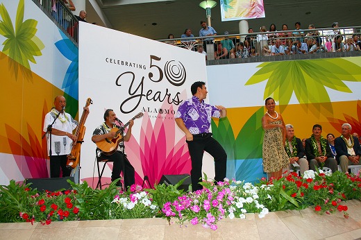 8月14日、金曜日にアラモアナセンター50周年を祝う式典がセンターステージで行われました。