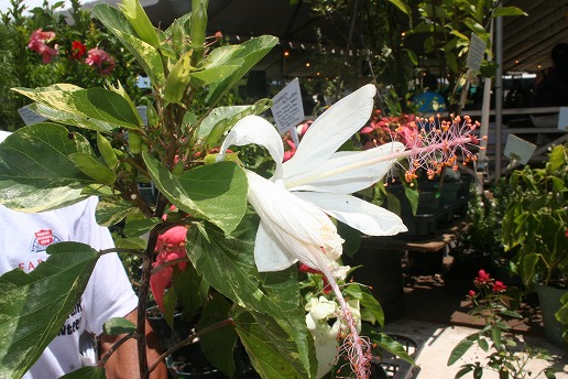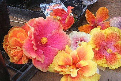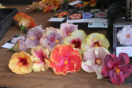 この週末、ビショップ博物館で行われたファームフェアに行ってきました。ここで、宝石のような虹色のハイビスカスを発見