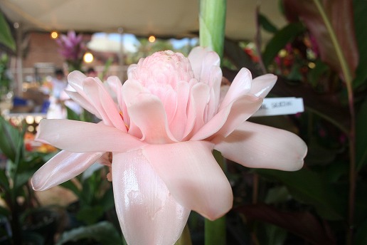 こちらは、「松明しょうが」という意味の名前の花、「トーチジンジャー」です。まるで燃え盛る炎をたたえた松明のように真っ赤な花が主流ですが、オアフ島のファームフェアでこんな可愛らしい色のものを見つけてしまいました。