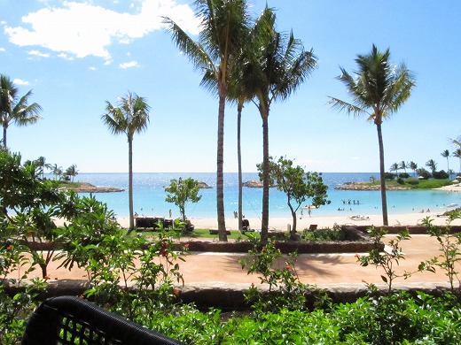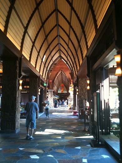 ロビーへ。わー、天井が高い。「ハワイ」っぽさを前面に押し出した造りで、ワクワクしてきます。 働いている人はハワイの人が多いみたい。笑顔とサービスが最高です。嬉しいな、嬉しいな~。