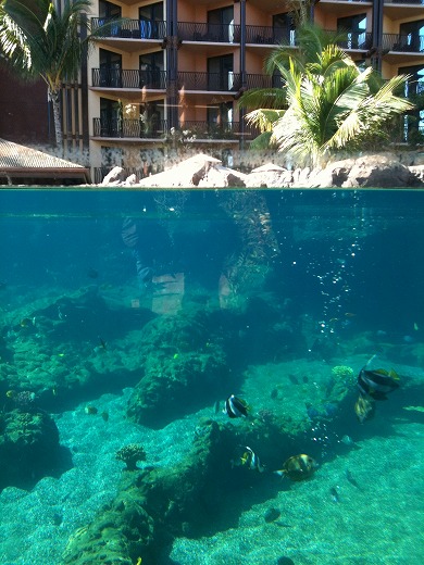 熱帯魚もいますよ。プールの側面がガラスになっていて、水面下を外から覗けるようになっているところがありました。
