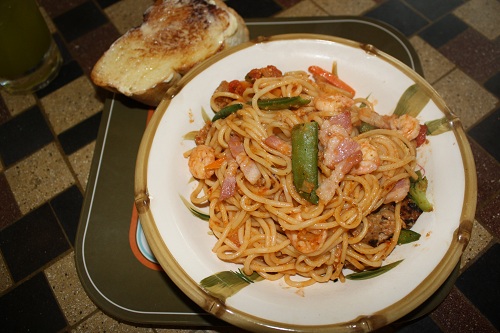 食べたのは、チキンサラダとナポリタン。 どちらも本当に美味しかったです!! 特に、チキンサラダは葡萄、ブロッコリーなど、具沢山の上に、さらにカリカリのベーコンビッツがたくさんかかって、これがまた素敵なアクセント♪