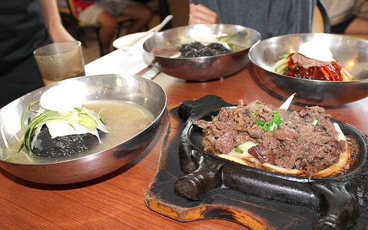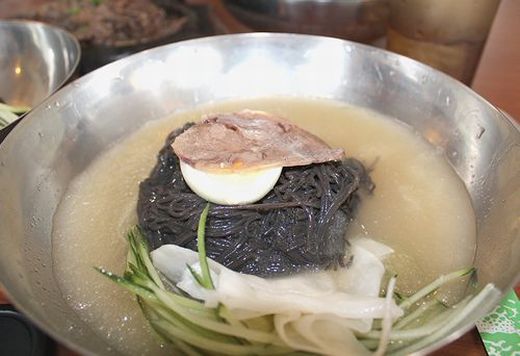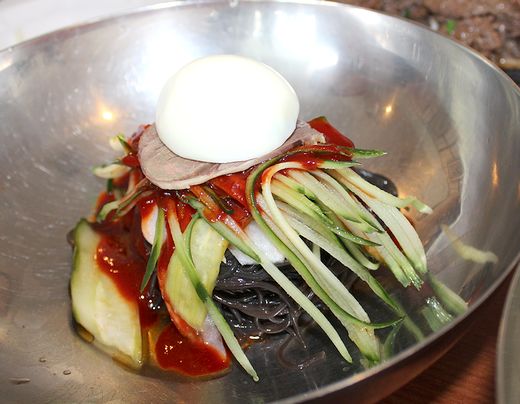 そうです、ここの冷麺は黒いんです。葛で作られた麺だそうですよ。