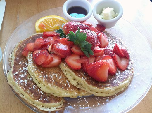 こちらのカフェといえば、フレッシュなフルーツをこんもりと盛り付けてくれる、パンケーキなどが有名ですね。