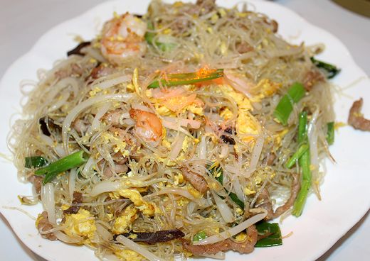 これ、麺が春雨のように細くてツルンとした歯ごたえのものでした。具には肉、エビ、野菜、卵などこれまた盛りだくさんで、味付けも日本人好みの醤油味でしょうか、とっても美味しくいただきましたよ。