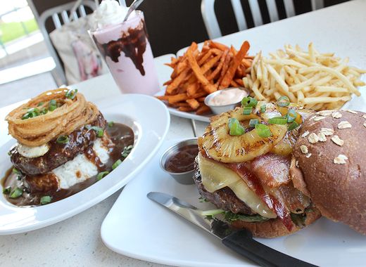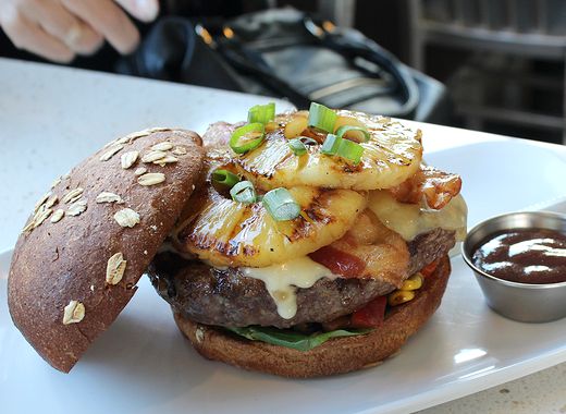 うわ~。これまた厚めのパテに、とろ~りチーズが溶けて、こんがり焼かれたパイナップルのトッピング。肉が、「早く食べて~!」と呼んでます。こういうグルメハンバーガーを食べられるところって、日本ではまだ数が少ないですよね。アメリカらしい!