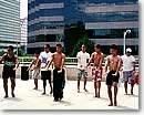 重大な責任を遂えるはずもない私は下準備と仕上げ担当者に徹しました。大会直前には1日がかりで様々な色と種類の花が集められ、夜中までかかってハク(バンナースタイルのレイ)が作成されました。両親共働いていることが多いハワイでは子供の世話も両親で見るケースが多く、練習の送迎だけでなくこのような大会準備の段階で父親の姿も多く見られます。小さい兄弟がいれば祖父母に預けて、両親は大会準備に追われ、ケイキは踊りに専念しなくてはいけません。まさに家族総出です。