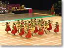 フェスティバルの締めくくりは、フラ大会です。今年はちょうど30回目にあたり、2日間にわたって繰り広げられました。私の所属するハラウもメリーモナーク終了直後から練習に入りました。メリーモナークと大きく異なる点は、演目がアトランダムで、メリーモナークのようにカヒコの日とアウアナの日が分かれていないこと、メリーモナークにはミスアロハフラといってソロのフラがありますが、カメハメハにはそのかわりにコンバインといって男女混合で踊るフラがあることです。西海岸、日本からもハラウが参加しました。昨年より数は減ったものの、相変わらずフラはハワイ以外でも人気があることがうなずけました。 |