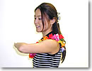 ![]() 車のハンドルを握っている動作。右に左に回します |