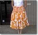 実は、日本から来られた「ハワイの歩き方」の読者の方にお会いし、パウを頂いたのですが、人前で踊ったことのない私は、あいにくまだ一度もそのパウを使用していないのです。鮮やかなオレンジ色の布地に白の花が描かれているそのパウは、彼女の手作りということです。腰の部分が4列のゴムバンドになっていて、見るからに作るのが大変そう。そう言えば、メアリー先生も、「布だけ持ってくれば、$25でパウを作ってあげるわよ」と言っていました。フラをずっと続けていると、手先の器用な人は衣装まで自分で作りたくなっちゃうのでしょうね。今回訪れたフラ・サプライでは、布地も豊富に取り揃えられていました。