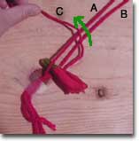 5. 写真3のように、CをAとBを巻き込んだループの中に通し、きゅっとしめます。