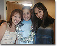 | 真ん中がエリース。パーティで銀紙のきれいなレイをもらって記念撮影 | |||