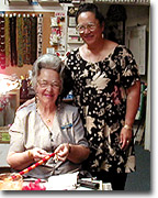クラスを実際に教えているのは、アンティ・メアリールーではく、娘さんのポレットさんです。その昔、茨城の常磐ハワイアンセンター(懐かしい!)に2ヶ月ほどデモンストレーションのために行っていたというポレットさんは、とっても明るい先生。お店の中を一通り案内してもらい、フェザーレイについて少し説明してもらいました。