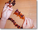 実の中央にドリルなどで穴を開けて、糸でつなげていくのですが、色の違うものを組み合わせたり、実と実のあいだに葉っぱ、他の実や種子を入れたり…。アイデア次でとても素敵なレイになります。