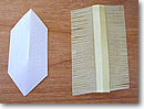 3. クリーム色のリボンは折り目にそって2インチごとにカットし両端を山型に切り落とします(写真参照)。