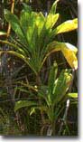 館内ツアー、フラ・ショー、ランチの後、いよいよレイ・メイキングの時間。今回は「ティー・リーフ」という葉っぱを使ったレイです。ティーの木(写真右)は、ハワイでは昔から魔よけの効果があり幸運を呼ぶといわれており、レイにもよく使われる材料です。渡されたティーの葉っぱは長さ30〜40・くらいで、芯をとってタテ半分に切ってありました。