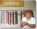 ちょっと、通称「おばちゃん」のご紹介です。名前を「ファーン」というそのおばちゃんは、ホノルル国際空港のレイ・スタンドでレイを作っています。ズラ〜っと並んでいるレイ・スタンドの中の一つ、「Dora’s Lei Stand」が彼女の職場です。店名の「Dora(ドラ)」とは、ファーンおばちゃんのママの名前なんだそうです。ファーンおばちゃんと、ドラおばあちゃんはこのレイ・スタンドで親子一緒にレイ・メーキングしてるんですね。このファーンおばちゃん、何とフラのコンペティションに、ダンサーたちと一緒に行って、レイを作ってあげたりもしてるんですよ。