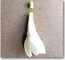 ハワイの文化、フラのダンサーたちに自分の作ったレイをかけて踊ってもらうことは、レイ・メーカーにとって、この上なく名誉なことなのです。フラ・コンペティションの最高峰、あのメリー・モナーク・フェスティバルにも行ったことがあるんだそうです。今度もまた、「7月にはフロリダで、9月と11月にはカリフォルニアで行われるフラの大会に付いて行くことになっている」とも話していました。聞けば聞くほど、「なんだか、すごい人に教わることになってしまった」と恐縮する一方、優しくて大らかなこのファーンおばちゃんと、ちょっとはにかみ屋のドラおばあちゃんは、どこか私の母親と祖母を思い出させてくれてホッとできる存在でもあるのです。「親しみやすい匠」といったところでしょうか。そして、用意されたのが、香りの良いチューブ・ローズ。チューブ・ローズの花を30個くらい使います。作り方は次の通りです。