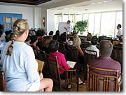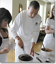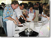 同店はオープンキッチンになっており、食事を楽しみながらシェフ達の働く様子も見ることができ、それも料理好きのゲストには好評でした。さらに一昨年には、同店のシェフなどが料理のデモンストレーションや、調理実習を施すという料理教室「カハラ・キュリナリー・アカデミー」を試験的に開講。好評を博し、今年も1月から、第2期目のクラスがスタートして人気を集めています。扱うメニューは、ハワイの素材を中心に使った、ハワイ、アジア、ヨーロッパの料理。厳密にはハワイアンフードとは異なりますが、今回は「気軽にお稽古」シリーズの特別編として、この「カハラ・キュリナリー・アカデミー」をご紹介しましょう。 |