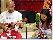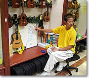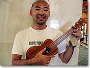 ●人気若手プレーヤー、ブルースのレッスンが受けられる! ブルースはホノルル出身。6歳で母親からウクレレを習い始め、その後「ロイ佐久間ウクレレ・スタジオ」でも、数年間レッスンを受けたそうです。兄は、世界屈指のウクレレ・プレーヤー、ジェイク・シマブクロ。スポーツ少年だったブルースは、幼少時、あまりウクレレに熱心ではなかったとか。「全然練習しないでレッスンに出かけることもしょっちゅうだった」とブルース。 が、ウクレレに熱中するジェイクの姿を間近に眺めるうち、ウクレレ熱が再燃。最終的にはジェイクにウクレレを習うようになりました。「5歳年上のジェイクは忍耐強く、「教えて」と言えばいつでも教えてくれたし、練習しなくても怒ることがなくて。最高の先生でしたね」。今ではブルースはウクレレを主体とした3人組の音楽グループ、その名も「ブルース・シマブクロ・バンド」を結成し、コンサート活動を行っているほか、シングルのCDデビューも。 ハワイ内外でウクレレ・レッスンも行っており、ハワイ観光局などの招きで日本でレッスンを行ったこともあるので、ご存知の方も多いのではないでしょうか? 今年も5月から6月にかけてオアフ島観光局の依頼で、「2005オアフ・フェスティバル」に参加。レッスン&パフォーマンスを行ったのは記憶に新しいところです。 |