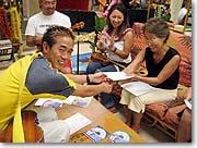 ●レッスン後は終了証とCDを贈呈 レッスン後には、ブルースから1人1人に、名前入りの終了証が贈られ、皆さんとても嬉しそう。この日習った「ワイプアウト」の練習用CDも一緒に渡されるので、家に帰っておさらいできるのが、また嬉しいですね。 以上のように、今注目のウクレレ・プレーヤーから、アットホームな雰囲気でレッスンが受けられる「ウクレレ・プアプア」のウクレレ・レッスン。家族揃って参加してみるのも、楽しいかもしれませんね! |