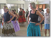 ●後半はいよいよ曲のレッスンに挑戦 なお参加者の服装は自由ですが、動きやすい格好を心がけ、足元は素足がベター。取材時にもサンドレス、ショーツ、ジーンズ、パウスカート(フラ・スカート)など、皆さん、思い思いの服装で参加していました。レッスン中は意外に汗をかくので、タオル、そして水の用意もあると便利でしょう。 以上のように、飛び入りOKのカジュアルなレッスンながら、みっちりフラの「いろは」が学べるナラニさんのレッスン。「本式のフラのハラウは規律などすごく厳しい部分もあるけれど、このレッスンではまず楽しくフラを学べることを心がけています。かつ、ハワイのフラ・ハラウではどんなことを習うのか、その雰囲気も垣間見られるのがこのクラス。気軽に参加してください」とのナラニさん。フラに興味のある人は、ぜひ一度参加してみませんか? |