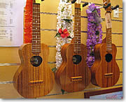 工場ではホンの小さな傷のあるウクレレが$100引きで買えることも(写真のウクレレは展示品) |