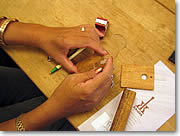 コアの小さな板を使って、キーホルダー作りも体験します |