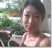 3ヶ月の予定でワイキキに滞在中です。今回は1人で、ラウハラ編み、ハワイアン・キルト、クロシェットレイなどクラフト体験を目的にハワイに来ました。ピオニー・アーツでキャロル先生のレッスンを4、5回受け、今日初めてホテル主催のレッスンに参加してみました。先生は、わからない点を、私がしっかり理解するまで教えてくれ、折々進み具合もチェックしてくれるので、とてもわかりやすいですね。ハワイアン・キルトは日本でも経験がなく、慣れるまでは大変でしたが、一度慣れてしまえばすごく楽しいです。1人で旅行中なので、レッスンを受けながら先生やほかの参加者とおしゃべりするのも楽しみです。 |