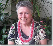 ●キルトの大御所のレッスンが無料! 今回ご紹介するのは、今オアフ島でハワイアン・キルトの第1人者と目されている、キャロル・カマイレさんのキルト・レッスン。毎週火曜、ワイキキ・ビーチ・マリオット・リゾート&スパの中庭で開催されており、なんとレッスン料は無料! 名立たるキルトの大御所のレッスンが飛び込み&無料で受けられるのですから、これはまたとないチャンスですね。まずはキャロルさんの横顔から、ご紹介しましょう。