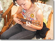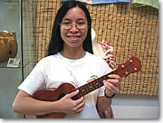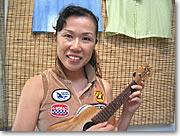 ●ウクレレ専門店としてはハワイ最大 レッスンの詳細に入る前に、まずは同ショップについてザッと説明しましょう。同ショップは、その規模においてハワイ最大、つまりは世界最大ともいえるウクレレ専門店です。常に150本?200本もの在庫を用意しており、扱いブランドはカマカ、コアロハ、Gストリングス、セニーザ、マウイ・ミュージックなどのメジャー・ブランド、そして個人のウクレレ製造者など、15種以上。 その他ウクレレの学習本やCD、ケースなど周辺アイテムのほか、フラ専門店との提携によるフラグッズやアロハ・デザインのウエア、また豊富なハワイアン・アクセサリーなど、ウクレレのみならず総合的なハワイアンショップとして、高い評価を集めています。 |