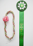5月1日はレイデーで昨年(2007年)よりリボンレイの部が認められる事になりました。 カピオラニ公園で開催されました由緒あるレイコンテストも今年で第81回も迎えました。 この記念すべきレイコンテストに参加しましたところ、入賞することができました。 作品はHOKU247のオフィスに展示してありますのでぜひ見に来てください。 |