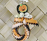 ●ハロウィン ALOHA?! ハワイでリボンレイ講師をしているモモです。 皆さんお元気ですか? 10月のビックイベントと言ったらハロウィンですね。子供達が一番楽しみにしているお祭りで、10月31日に行われます。夜のカラカウア通りはコスチュームを着た人で一杯になります。ハワイでのハロウィンは最高に楽しいですよ。今回は作品の紹介です。ハロウィンカラーのリボンでストラップを作成してみました。ハロウィンのオーナメントとして飾るのも可愛いですね。同じ色で作っても編み方が違うだけで雰囲気も変わりますね。