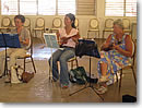 これが「初級2」のクラスになると、さらに難しい曲に挑戦。「初級2」は「初級1」の終了者なら誰でも入れますが、「中級」は参加するのにオーディションがあり、合格者のみが参加できます。中級クラスのメンバーはまた「WCCウクレレ・アンサンブル」とのバンド名で、ホテルや老人施設、ショッピングセンターで演奏する機会もあるそうです。