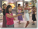 その間、ステージ上からロレインさんが注意を与えつつ、時には参加者の列を前後に入れ替え。わずか90分ながら、一人ひとりに目が行き届き、指導の濃度が相当高いので、英語が分からなくても、また全くの初心者でも遅れることなく、レッスンについていくことができるんですね。レッスンが終わる頃には、参加者も笑みを浮かべつつ、自信を持って踊る姿が印象的でした。最後には、そのままのグループで、ステージで踊りを披露しても問題なさそうなほど、参加者の全員が優雅な踊りを見せていました。