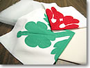 キルトクラスは、毎日午前10時30分から2時間毎に実施(クラスは2時間。当日でもよいので、あらかじめ電話で確認を)。費用は$35で、45センチ×45センチのクッションカバー用キット代が含まれています(布やコットン、糸、日本語による説明書込み)。このキットだけを別途購入しても$32かかることを考えると、講習費はほとんど「無料」と言えるかもしれません。キットは白地に、各色でパイナップルやアンセリウム、ハイビスカスなどモチーフ5種類があり、好きなものを選ぶことができます。