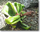 パーク内にも見所がいくつかあります。一つは「アフ・ポハク」。これもまたパークの歴史家により1981年に発見されました。一見、岩の上に苔むした石が並んでいるだけのように見えるのですが、これは「路傍の地蔵」ならぬ、「路傍の祭壇」だそうです。この道の奥には、酋長一族の居住地があったことが知られているので、「酋長への献上物を供えたり、酋長への敬意を示すためお参りをするための場だった」と推測されています。また、「ワイメア・ヴァレーの聖霊を祀る祭壇だった」との説もあるようです。目印となる説明書きがなければ、見落とされてしまうような岩なのですが、誰が供えたのでしょうか? 撮影で訪れた時にも、古代ハワイ式にティーリーフで包んだ供え物が、一つだけポツンと置かれているのが印象的でした。