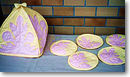 その上、ティーコゼーとコースターのセットまで完成していた。。お紅茶好きの私はこのセットを喉から手がでるくらいほしい…。とにかくクッションカバーを作るより何よりこれらを完成させた我が母はやはり、あなどれない…。