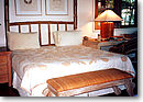 部屋によって色は異なりますが、このように薄いピンク、又は淡い緑を使ったハワイアンキルトが部屋に入った瞬間に目に入ってくるのです。ハワイの涼しい風が部屋の窓から入り、椰子の葉の揺れる音が心地よく耳に入ってきます。。時間がたつのを忘れてしまうくらい、リラックスした時をハワイアンキルトに包まれて過ごしてみるのは最高の贅沢です。