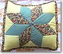 ハワイアンキルトはまだ難しいですが、パッチワークならちょっとできるかも。簡単なスターの図案から一緒に作ってみてはいかがでしょうか?好きな色から生地を選んでもらい、手伝ってもらっていると、いつの間にか興味が湧くようです。これも大好きな黄色で作ったパッチワークキルトのクッションです。